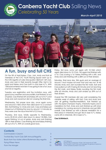 Canberra Yacht Club Sailing News The Canberra Yacht Club